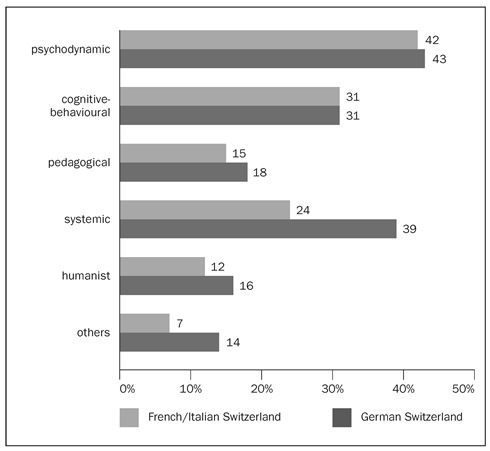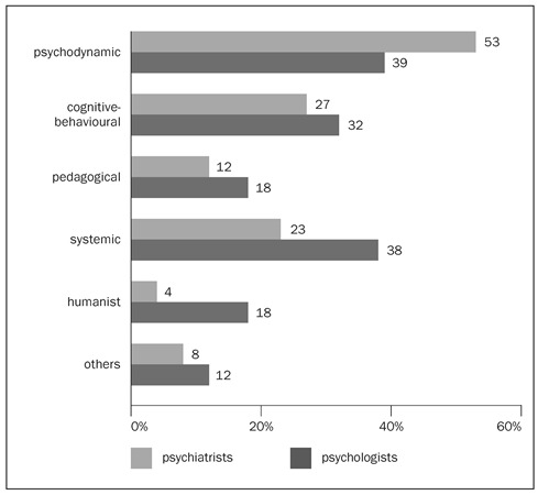 Objective: The aim of this survey is to explore the differences in certain salient aspects of the practice of group therapy between psychiatrists and psychologists and between the two cultural regions of Switzerland. Psychiatrists and psychologists, who differ in their training and forms of professional activity, might also differ in their practice of group activities and their theoretical orientations. In the same way, with the probable existence of diverse schools of thought according to region, group therapists might present differences according to whether their cultural heritage is Germanic or Latin. Methods: A brief questionnaire, comprising questions concerning the therapists and the main group they were handling, was sent to the members of the Swiss Psychiatric Association and the members of the Swiss Federation of Psychologists. This survey covers the therapists who indicated that they practised group psychotherapy (n = 533). Results: Psychologists constitute three-quarters of group therapists, while psychiatrists only represent a quarter. Two-thirds of these therapists live in the German-speaking region and one-third in the French- or Italian-speaking region.The overall results show that there exists a sort of basic practice and common theoretical reference in both the professions considered herein and in both cultural regions of Switzerland. The groups that these therapists are handling are mainly small, made up of adults, with diagnoses of depressive, anxiety or personality disorders, and often taking place in psychiatric institutions. Questioned about their principal theoretical orientation,group therapists first mention a psychodynamic approach, then systemic and cognitive-behavioural orientations. Beyond this set of features which are common to both professions and both regions, the main differences appear between psychiatrists and psychologists. Psychiatrists, who are in the majority men, more frequently conduct adult, long-term groups, in private practice. They have a more marked psychodynamic profile than psychologists. In contrast, psychologists, who tend to be younger, are mainly women.They spend more time on group therapies than psychiatrists and they more frequently deal with children and adolescents, sometimes in non-medical settings. More eclectic in their theoretical references, they more often endorse systemic and/or humanist orientations. There is little differentiation between the two cultural regions, nevertheless eclecticism and the choice of a systemic orientation appear more frequently in the German-speaking region of Switzerland than in the region where French and Italian are spoken. Conclusion: Several of the features described for the groups handled by psychologists indicate the practice of family therapies.Thus, it seems that this form of therapy is currently more the domain of psychologists than of psychiatrists. Psychiatrists more often practise a type of group therapy which has been used since the end of the Second World War (with adults, a longer duration, in private practice and with a psychodynamic orientation). In the future, new norms for training, growing economic pressure and a tendency to favour shortterm therapies rather than long psychodynamic therapies will undoubtedly influence the evolution of these different care models and the practice of group therapists, be they psychiatrists or psychologists.