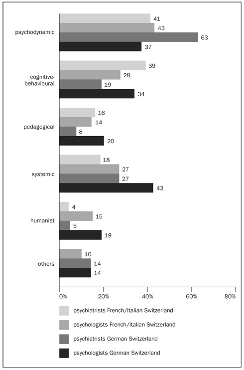 Objective: The aim of this survey is to explore the differences in certain salient aspects of the practice of group therapy between psychiatrists and psychologists and between the two cultural regions of Switzerland. Psychiatrists and psychologists, who differ in their training and forms