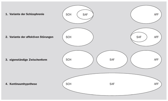 Kraepelin’s dichotomous classification of functional psychoses with schizophrenia on the one hand and affective disorders on the other hand was challenged by nosological concepts such as schizoaffective psychoses. This term was introduced by Kasanin when he described patients with a mixture of psychotic and affective symptoms who showed a full recovery after a few months. The modern diagnostic systems ICD-10 and DSM-IV do not follow Kraepelin’s dichotomous classification but include further diagnostic categories like schizoaffective disorders. Diagnostic criteria for ICD-10 schizoaffective disorders require the presence of both prominent affective symptoms and “typical schizophrenic” symptoms like thought insertion, thought broadcasting, thought withdrawal, hallucinatory voices, delusional perception or delusions of control.Concerning the regional frequency of this diagnosis, empirical investigations show a high variability. The frequency of ICD-10 schizoaffective disorders within the whole diagnostic group “schizophrenia, schizotypal and delusional disorders” ranges between 7.8 and 33.3%. Until now, the interrater reliability for schizoaffective disorders according to ICD-10 criteria is not sufficient. Kappa-values range between 0.24 and 0.63. In particular, the nosological state of schizoaffective disorders is still unclear. It is possible to distinguish at least four different nosological concepts (variant of schizophrenia, variant of affective disorders, intermediate entity between schizophrenia and affective disorders, continuous spectrum model of functional psychoses). Several investigations using multivariate statistical analyses failed to identify schizoaffective disorders as a distinct entity with regard to the cross-sectional clinical picture. These findings are in line with the continuous spectrum model. Concerning the course of illness, divergent results were reported in different investigations. The course of schizoaffective disorders seems to depend on the underlying diagnostic criteria. A temporal dissociation of psychotic and affective symptoms, the constituent diagnostic criteria for schizoaffective disorders according to DSM-IV criteria, seems to predict a more unfavourable course. However, schizoaffective disorders according to ICD-10 criteria are more similar to affective disorders than to schizophrenia, compatible with the conception of a variant of affective disorders. These results support Kraepelin’s dichotomous classification of functional psychoses, provided that schizoaffective disorders are subsumed under affective disorders.Because of the more favourable course of illness ICD-10 schizoaffective disorders should be classified not as a subcategory of “schizophrenia, schizotypal and delusional disorders”, but as a subcategory of affective disorders. Full article