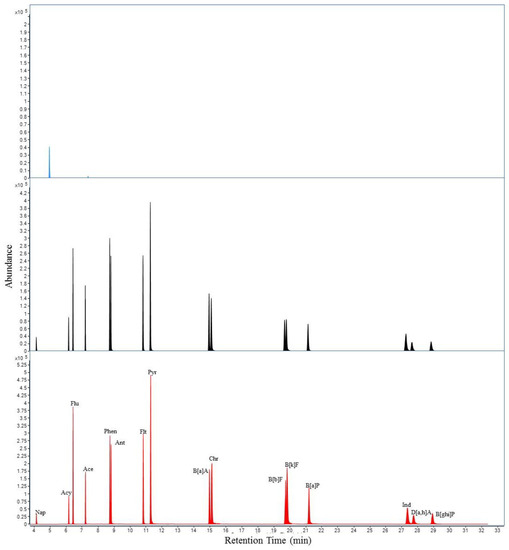 Polycyclic aromatic compounds (PACs) are a large family of combustion-produced and environmentally persistent organic contaminants with various chemical structures [1,2]. They occur naturally through volcanic activities and wildfires [3]. Anthropogenic activities are the primary source contribution of PACs because of incomplete combustion of fuels in myriad processes including industrial emissions and mobile emissions from vehicles [4,5]. The most important environmental compartments for PACs are air, water, plants, foods, and soils. Some PACs exhibit carcinogenic and mutagenic properties, and their non-polar and hydrophobic characteristics make them environmentally persistent with an associated ecological threat [6,7]. Therefore, the determination and remediation of PACs are of great interest. Several strategies have been used to remove PACs from the environment, including leaching, photo/chemical oxidation, biodegradation, wet/dry deposition, and chemical degradation [8,9].