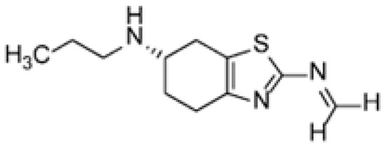 - Biglan, K.M.; Holloway, R.G. A review of pramipexole and its clinical utility in Parkinson’s disease. Expert Opin. Pharmacother. 2002, 3, 197–210. [Google Scholar] [PubMed]