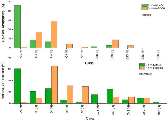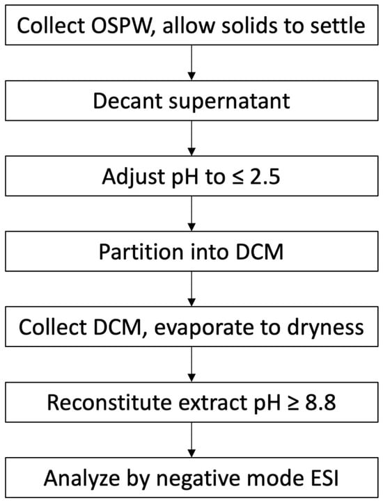 - Headley, J.V.; Peru, K.M.; Barrow, M.P.; Derrick, P.J. Characterization of naphthenic acids from Athabasca oil sands using electrospray ionization: The significant influence of solvents. Anal. Chem. 2007, 79, 6222–6229. [Google Scholar] [CrossRef]