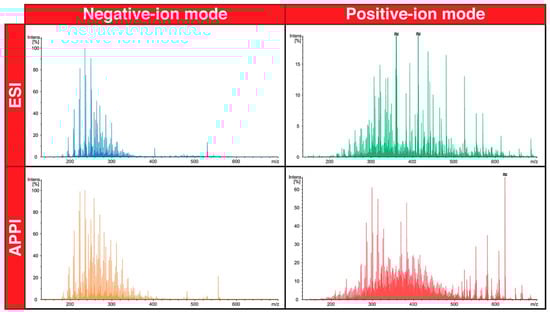 - Raffaelli, A.; Saba, A. Atmospheric pressure photoionization mass spectrometry. Mass Spectrom. Rev. 2003, 22, 318–331. [Google Scholar] [CrossRef]