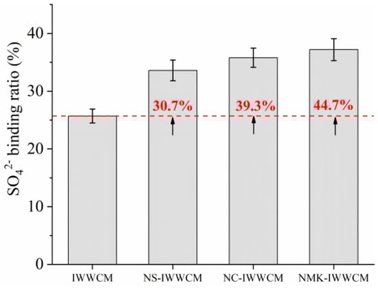 SO42− binding ratios of IWWCM specimens incorporated with different NMs.