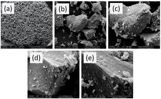 The SEM images were obtained using a Tescan Mira 3 (Czech Republic) scanning electron microscope (SEM). For the SEM analysis, the polymer was previously coated with a thin layer of gold (30 nm) and placed in an aluminum sample holder with carbon tape, using Bal-Tec SCD Sputter Coater equipment (New York, NY, USA) to reduce charging under the incident electron beam during analysis. The micro-photographs of the polymer were obtained at 25, 400, 800, 1600, and 6000 times magnified, with a scale of 2.0 mm, 100.0 μm, 50.0 μm, 20.0 μm, and 10.0 μm, respectively. The degree of crystallinity of the polymer was evaluated using a PAN analytical, X’Pert PRO MPD diffractometer (Almelo, Germany). The XRD pattern appearance was employed to infer the solid-state structural properties, such as the degree of crystallinity (structural order) or amorphous content of the polymer. Thus, the XRD pattern was generated by radiation Cu Kα (λ = 1.54 Å) for a Bragg’s angle range of 5° to 80° (2θ angular ranges), using a scan step size of 0.05° and a time per step of 15 s.
