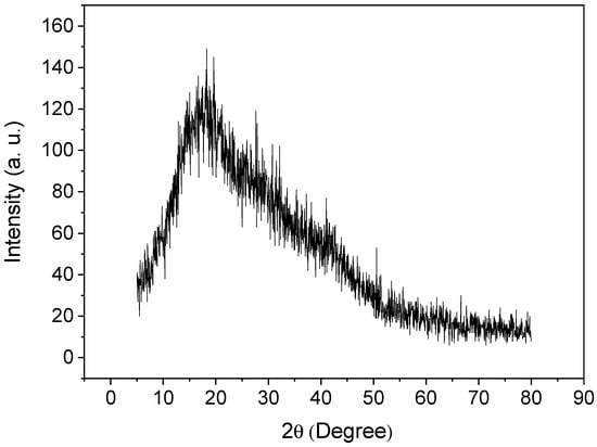An X-ray diffractogram of poly(protoporphyrin-co-vinyl pyridine) is shown in Figure 4. As can be observed, the presence of one halo at 2θ = 17° indicates the lack of crystallinity of the polymer, as expected, and the amorphous structure of the material [49,50,51].