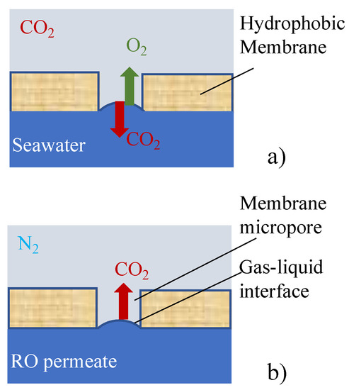 (a) Seawater pre-treatment and (b) RO permeate post-treatment by membrane contactors.