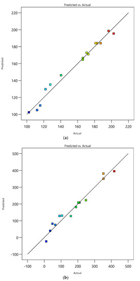 Predicted vs. actual responses: (a) Catechin, (b) Epicatechin.
