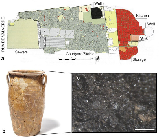 - Baeten, J.; Marinova, E.; De Laet, V.; Degryse, P.; De Vos, D.; Waelkens, M. Faecal biomarker and archaeobotanical analyses of sediments from a public latrine shed new light on ruralisation in Sagalassos, Turkey. J. Archaeol. Sci. 2011, 39, 1143–1159. [Google Scholar] [CrossRef]