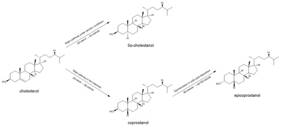 - Juste, C.; Gérard, P. Cholesterol-to-Coprostanol Conversion by the Gut Microbiota: What We Know, Suspect, and Ignore. Microorganisms 2021, 9, 1881. [Google Scholar] [CrossRef] [PubMed]