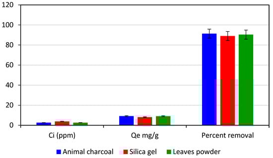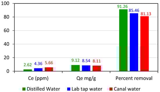 Similarly, percent removal was calculated using the following formula (Equation (3)) [27].