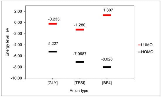 Values of HOMO-LUMO for [GLY], [BF4], and [TFSI] anions.