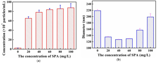 The concentration (a) and diameter (b) of nanobubbles vary with the concentration of SPA.
