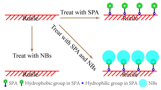 - SPA acts as a bridge to adsorb nanobubbles on the surface of rutile particles, significantly improving the solid–liquid interface contact angle of rutile surface.