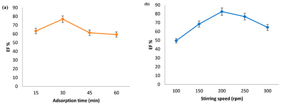 The impact of (a) extraction time, and (b) stirring speed on the CPSE procedure.