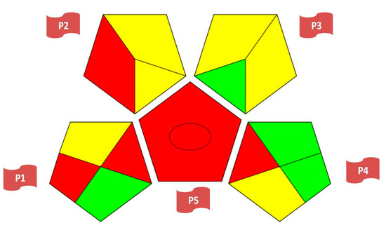 The second tool used to evaluate the suggested method’s greenness is GAPI, which offers a comprehensive picture of the various analytical stages through five pentagrams (P1–P5) made up of 15 zones in three distinct colors (red, yellow, and green). The color of each zone describes the degree of impact of each concerned step of the analytical method on the environment. If the zones in the pentagram are green or yellow, the respective greenness criteria are met. P1 has two red zones that correspond to off-line sample collection and transportation to the laboratory. The red zone in P2 is caused by the extraction required for LZ analysis in food matrices. The red zone in P4 is caused by the energy consumption (1.5 KWh) of the GC–MS instrument used for LZ analysis. Since the method is both qualitative and quantitative in nature, P5 is red. As a result, only five of the 15 parameters are in the red zone and cannot be avoided in forensic analysis in such cases. GAPI pictogram created for the suggested procedure is shown in Figure 5.