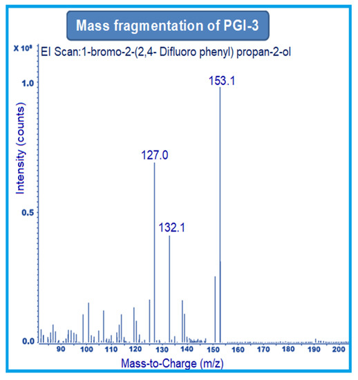 Gas chromatography with electron ionization mass spectrometry is a powerful analytical technique in the pharmaceutical industry for the highly specific and quantitative measurement of trace levels of analytes and impurities. Among various commonly encountered genotoxic impurities, alkylating agents, such as alkyl halides, alkyl sulfonates, and other related structures, poses significant challenge to analytical scientists for the development of suitable analytical methodologies for their accurate measurement at trace level [61]. These impurities, particularly alkyl halides, are typically generated during the chemical synthesis and processing of APIs, including Posaconazole, which often result in cytotoxicity. For instance, Posaconazole is a member of triazole derivatives, which potentially involve the utilization of alkyl halide during their synthesis process [62]. An optimized GC-MS/MS method was developed to determine the PGI-1, PGI-2, and PGI-3 content in posaconazole and in its intermediate. Due to the molecular mass and fragmentation are specific to each compound and impurity, there was no interference with the impurity retention time because of the sample and blank solutions. This method has the advantage of detecting impurities at the trace and ppm levels, whereas previous methods [54,55,56,57,58], such as HPLC, HPLC/UV and bioassay, HPLC-DAD, and LC-MS/MS, are not focused on the content and determination of impurities. These methods are complex and describe the content of posaconazole in other substances.