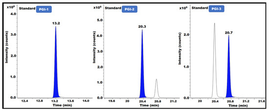 GC-MS/MS chromatograms of PGI-1, PGI-2, and PGI-3 show the accuracy of the method used in this study.