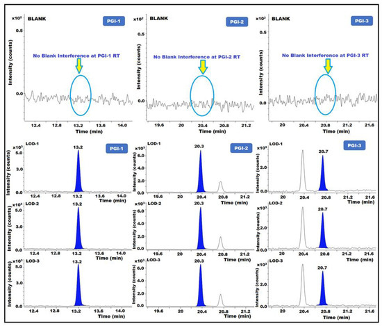 GC-MS/MS chromatograms of PGI-1, PGI-2, and PGI-3 show the limit of detection (LOD).