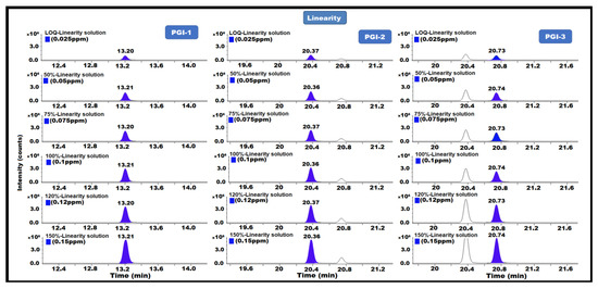 GC-MS/MS chromatograms of PGI-1, PGI-2, and PGI-3 show linearity.