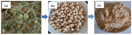 Photographs showing (a) fresh Zilla spinosa fruit, (b) dried and mature fruit, and (c) ground fruit.