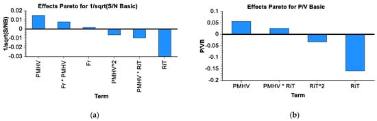 The estimated effect of the individual terms on the predicted responses can be seen in the Pareto charts in Figure 2. The charts show the relative effect of each included term on the indicated response. Each bar indicates the maximum size of the effect going from the lowest to the highest term value. Based on this, the most influential terms and underlying factors can be identified. For example, for the S/N basic, the RiT is the most influential term. The factor RiT is also part of the interaction term PMHV*RiT. Since the reciprocal square root is used for S/N Basic and S/N Main, the illustrated negative impact of the RiT on the transformed responses is a positive impact on the untransformed response. Or, simply put, if the RiT increases, S/N Basic will also increase.