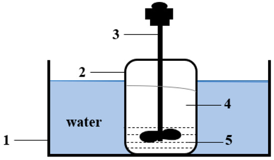 Ultrasonic device diagram. (1. Ultrasonic cleaner; 2. Stainless steel reactor; 3. Stirrer; 4. Reaction solution; 5. Ferrous powder).