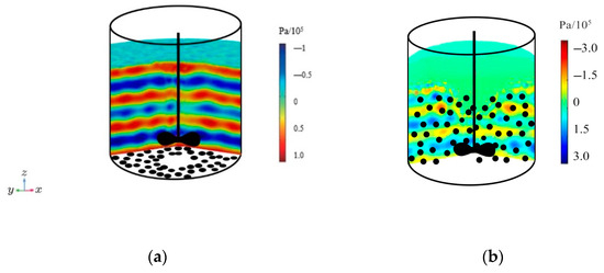 Sound field distribution at different stirring speeds. Black dots represent stan. (a) 0 r/min; (b) 500 r/min.