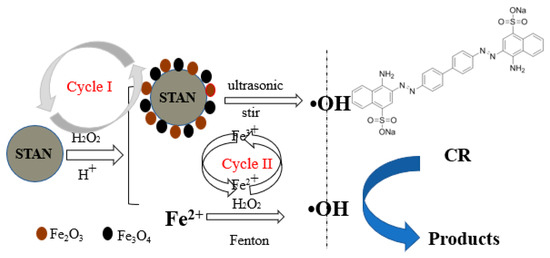 Congo red, sulphuric acid, hydrogen peroxide (30% H2O2), terephthalic acid (TA), and ferrous chloride were analytically pure, and stan’s diameter was 150~500 μm. The above obtained reagents are from Sinopharm Chemical Reagent Co., (Shanghai, China).