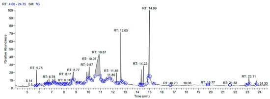 4.1. Gas Chromatography–Mass Spectrometry (GC–MS) Analysis