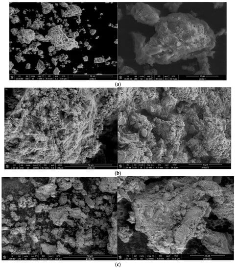 Subsequently, the SEM images for the functionalized samples are presented in Figure 10a–c.