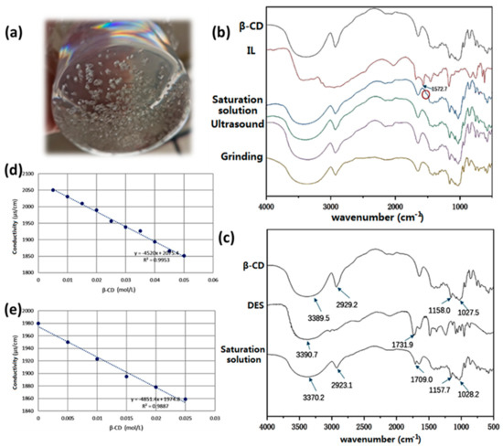 - Das, K.; Datta, B.; Rajbanshi, B.; Roy, M.N. Evidences for inclusion and encapsulation of an ionic liquid with β-CD and 18-C-6 in aqueous environments by physicochemical investigation. J. Phys. Chem. B 2018, 122, 1679. [Google Scholar] [CrossRef] [PubMed]