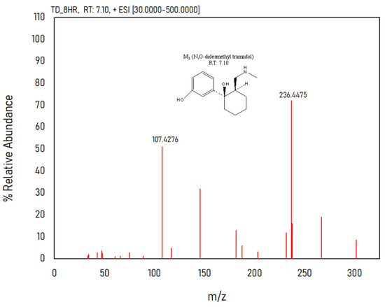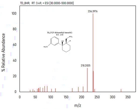 Mass spectrum of urine extract at RT: 7.10, m/z 236.4475 corresponding to the [M + H]+ ion of N, N-desmethyl TD (M5).