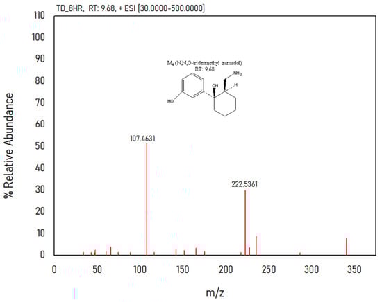 Mass spectrum of urine extract at RT: 9.68, m/z 222.5361 corresponding to the [M + H]+ ion of N,N,O-tridesmethyl TD (M4).