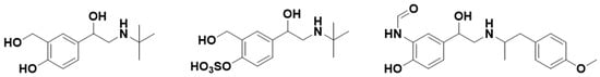 - Ward, J.K.; Dow, J.; Dallow, N.; Eynott, P.; Milleri, S.; Ventresca, G.P. Enantiomeric disposition of inhaled, intravenous and oral racemic-salbutamol in man—No evidence of enantioselective lung metabolism. Br. J. Clin. Pharmacol. 2000, 49, 15–22. [Google Scholar] [CrossRef]