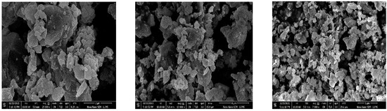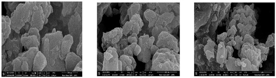 The surface morphology of the adsorbent samples was investigated using a scanning electron microscope. SEM images of mint–tawera composite is shown in Figure 3. It illustrated the porous morphology of the sample with different pore shapes and different pore sizes. Various cavities were also observed in the images that may cause good accessibility of the adsorbate to the adsorbent surface for adsorption. The SEM images of the mint–tawera compound treated with potassium ferricyanide also illustrated porosity in the structure, which caused the absorptivity of the adsorbate. When the MTPF image was compared with that of the untreated MTC composite, the agglomeration of the particles was reduced, leading to its increased absorptivity compared to the untreated mint–tawera composite (Figure 3).