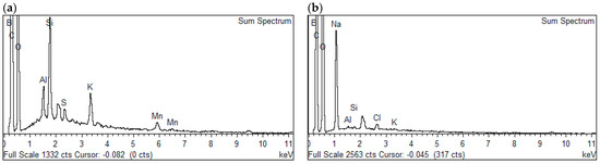 The chemical constituents of GO, BGO, and 3D/BGO were studied using EDX and the results are reflected in Figure 2 and Table 3. The existence of carbon (C), oxygen (O), and boron (B) in the samples was confirmed by the various elemental % shown in Table 3, while the successful grafting of boron into the GO structure was supported by the boron peak appearing in the EDX spectra (Figure 2). Furthermore, the intercalation of CCS within the adsorbent was also confirmed by a sodium (Na) peak located in the EDX spectrum of 3D/BGO (Figure 2b). The composition of boron before adsorption (12.92%) and after adsorption (12.64%) remained almost constant, indicating that boron was firmly integrated within the adsorbent, without any significant amount leaching out during adsorption. Interestingly, a comparison between the C/O ratio of GO (1.87) and that of BGO (3.72) suggested that the oxygen reduction could be due to the substitution of oxygen by boron during the doping formulation stage [32]. Moreover, the marked increase in carbon after adsorption (52.71% to 72.52%) indicated the successful adsorption of AMI onto the adsorbent active sites.
