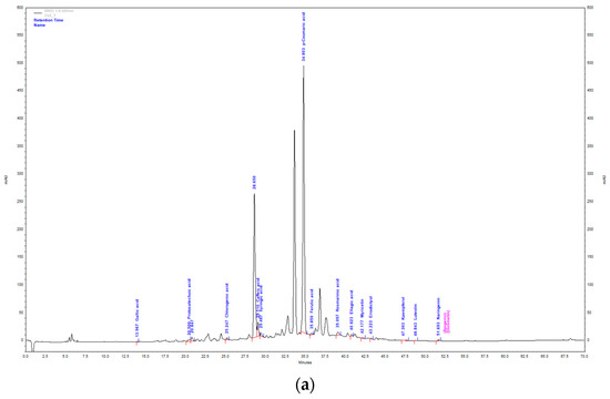 - Tumbas, V.T.; Mandic, A.I.; Cetkovic, G.S.; Djilas, S.M.; Canadanovic-Brunet, J.M. HPLC analysis of phenolic acids in mountain germander (Teucrium montanum L.) extracts. Acta Period. Technol. 2004, 35, 265–273. [Google Scholar] [CrossRef]