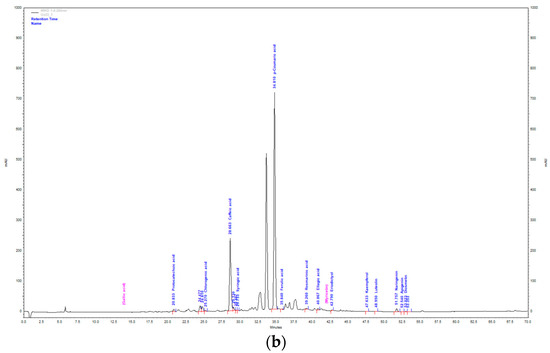 | 13 | Caffeic acid | 0.71 ± 0.01 | 10.73 ± 0.09 |