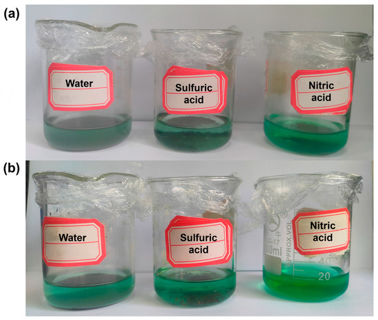 Figure 4 shows the change of solution before and after the start of the experiment, which is consistent with the description in Table 2. The above results show that only when nitric acid is used as the acid solvent, nickel slag can be completely dissolved into the liquid phase.
