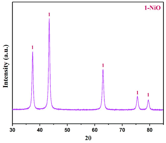 The basic nickel carbonate was roasted in a Muffle furnace at 600 °C for 1 h. The XRD pattern of the roasted product is shown in Figure 10. The results showed that the main phase of the roasted product was NiO. This is because after the basic nickel carbonate is calcined in an oxygen atmosphere, the excess CO32− and water molecules are removed.