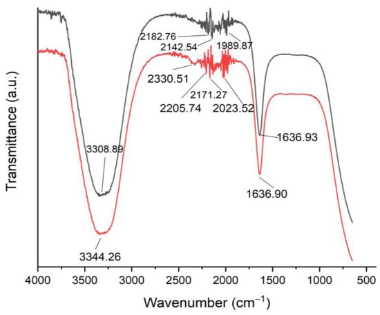 A FTIR analysis was conducted to detect the main functional groups of the bioinspired IONPs. The FTIR spectra revealed the presence of eight diffraction peaks at 3308.89, 2182.76, 2142.54, 1989.87, and 1636.93 cm–1 (Figure 5). The broadband recorded at a wavenumber of 3308.89 cm–1 in the spectrum of the C. sinensis extract may be attributed to the stretching of the O-H bonds in the alcohols and phenols [43]. Similarly, the wide band seen at a wavenumber of 3344.26 cm–1 in the spectrum of the biogenic IONPs might be attributed to the stretching of the O-H bonds in the phenolic compounds, suggesting the presence of polyphenolic compounds that act as capping agents on the biosynthesized IONPs. The band detected at 2182.76 cm–1 in the spectrum of the biogenic IONPs was shifted to 2205.74 cm–1 and attributed to C≡C stretching of alkynes (Table 1) [44]. Furthermore, the absorption bands seen at a wavenumber of 1636 cm–1 in the spectrum of the biogenic IONPs and the C. sinensis extract might be attributed to the bending motion of the C=C stretching in the alkenes [45]. On the other hand, the bands detected at 2171.27 and 2023.52 cm–1 in the spectrum of the biogenic IONPs might be attributed to the presence of thiocyanate and isothiocyanate compounds [46]. However, the band detected at 1989.87 cm–1 in the spectrum of the biogenic IONPs could be attributed to the C-H bending of the aromatic compounds.