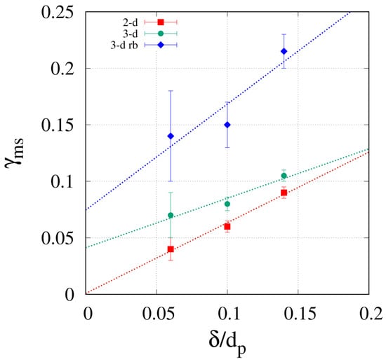 It can be readily observed that, for all three models, the obstruction factor increases with the shell thickness. However, both the 2-D and the 3-D models significantly underestimate the obstruction factor with respect to the 3-D rb model, accounting for the bottom retentive layer. The values of estimated from the 3-D model are in agreement with results reported by Yan et al. [41], who analyzed exactly the same experimental data without considering the bottom retentive layer. From now on, we will consider exclusively the 3-D and 3-D rb models to further investigate the dependency of the porous-zone diffusivity on phase retention factor .