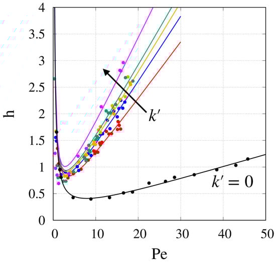 Figure 6 shows experimental plate height data h vs. for and different increasing values of .