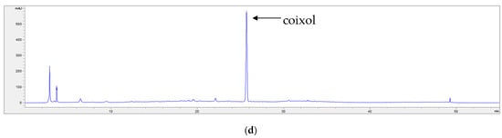 The extraction solvents were MeOH and EtOH (Pyeongtaek, Republic of Korea). HPLC was performed using an Agilent 1260 Infinity II Quat Pump (Santa Clara, CA, USA), and DAD WR detector (Santa Clara, CA, USA) with INNO C18 column (25 cm × 4.6 mm, 5 μm). HPLC-grade solvents were MeOH, water, trifluoroacetic acid (TFA), and acetonitrile (ACN) of J. T. Baker (Radnor, PA, USA). Coixol (Figure 2) was provided by the Natural Product Institute of Science and Technology (www.nist.re.kr; accessed on 1 December 2023), Anseong, Republic of Korea.