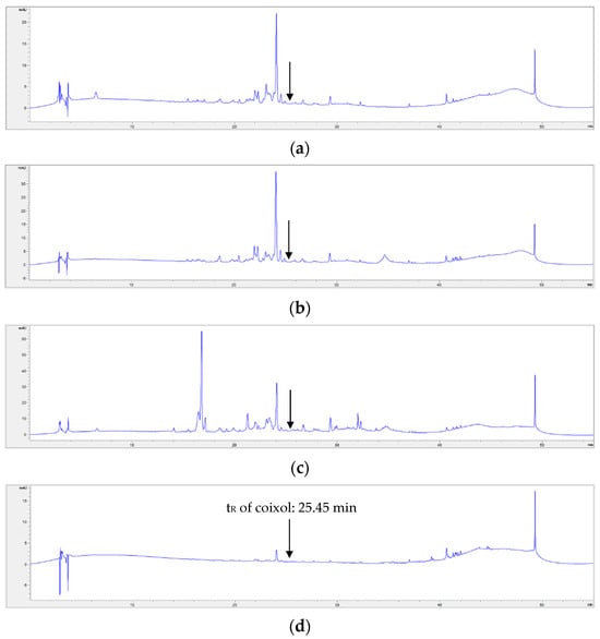HPLC chromatograms of seed samples SM1 (a), SE1 (b), SM2 (c), and SE2 (d). The meanings of the abbreviated sample names are the same ones as shown in Table 1.