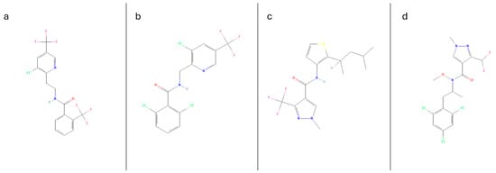 Chemical structures of the 4 analytes under investigation, fluopyram (a), fluopicolide (b), penthiopyrad (c), pydiflumetofen (d), structure data adapted from the PubChem database [].