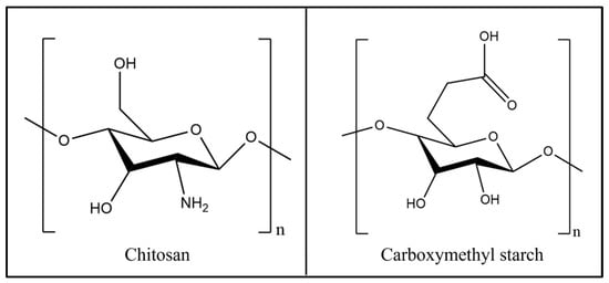 Structures of chitosan and carboxymethyl starch.