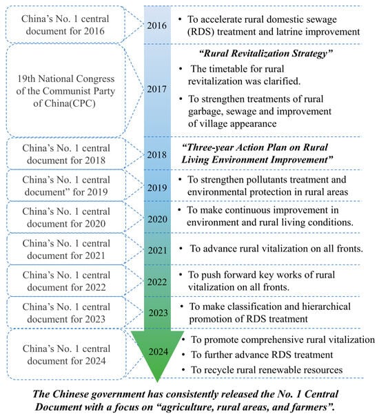A roadmap outlining a series of policies related to rural revitalization and RDS treatment issued by the Chinese government.