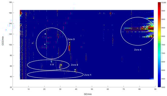2.7.1. Chromatograms and Comprehensive Two-Dimensional Contour Map